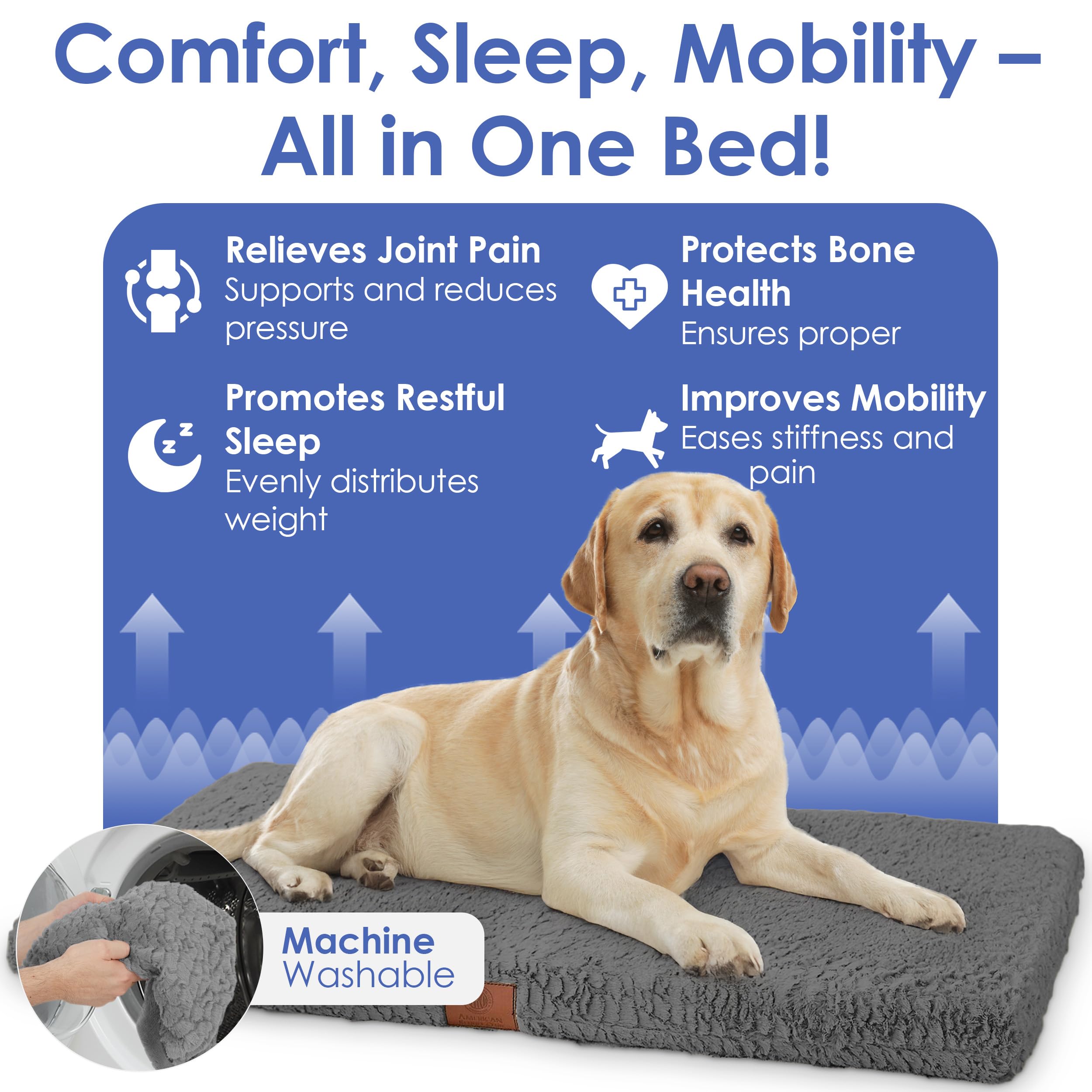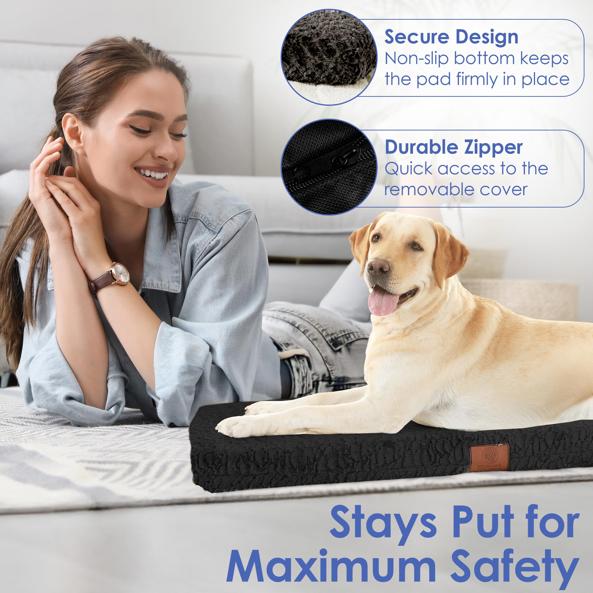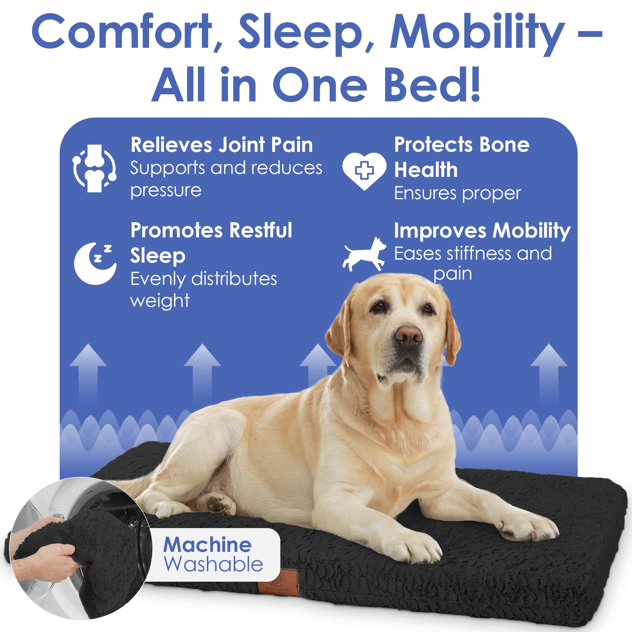 - Joint-Supporting Memory Foam: Designed for aging dogs and pets with joint issues, this orthopedic mat features high-density memory foam that relieves pressure on hips, knees, and elbows for all-day comfort.