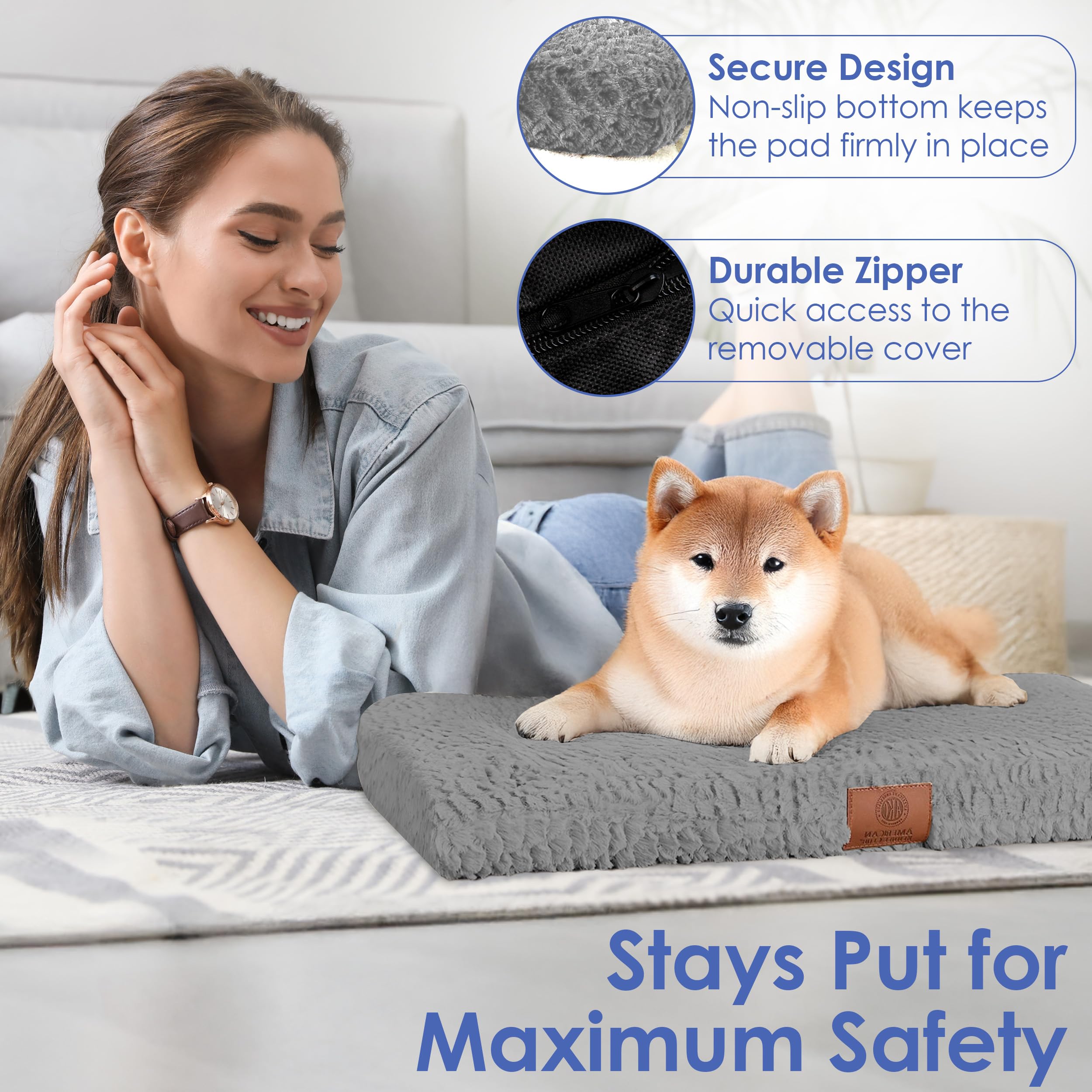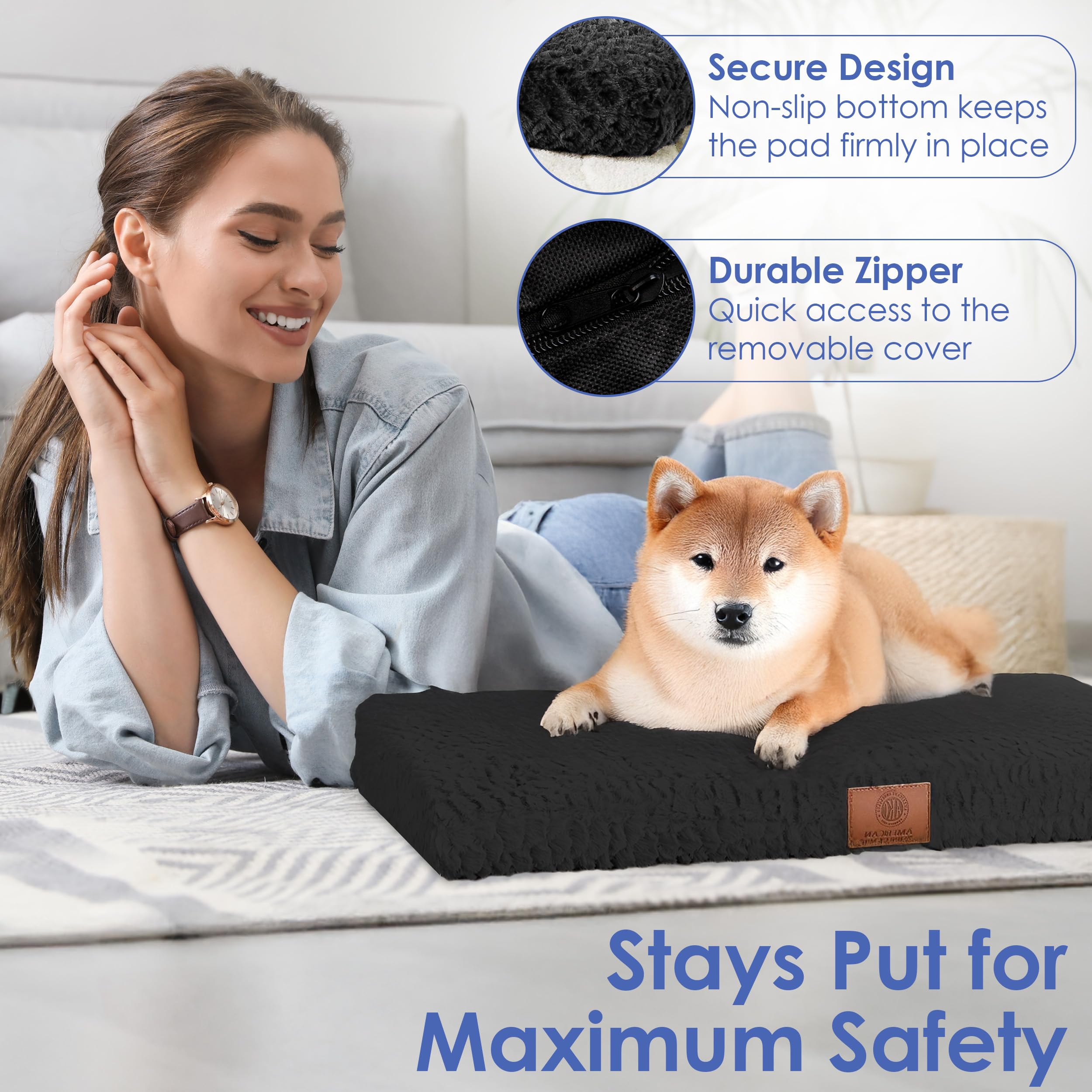 - Non-Slip & Crate-Ready Fit: A non-skid bottom keeps the mat stable on hardwood or tile floors, while the flat design fits perfectly inside most standard crates or can be used on its own.